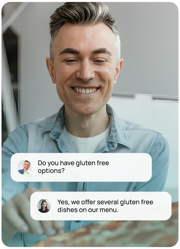 Customers get accurate answers about menu items, ingredients, and pricing without pulling your staff away from service.